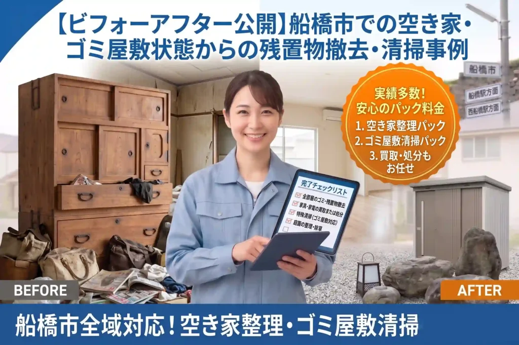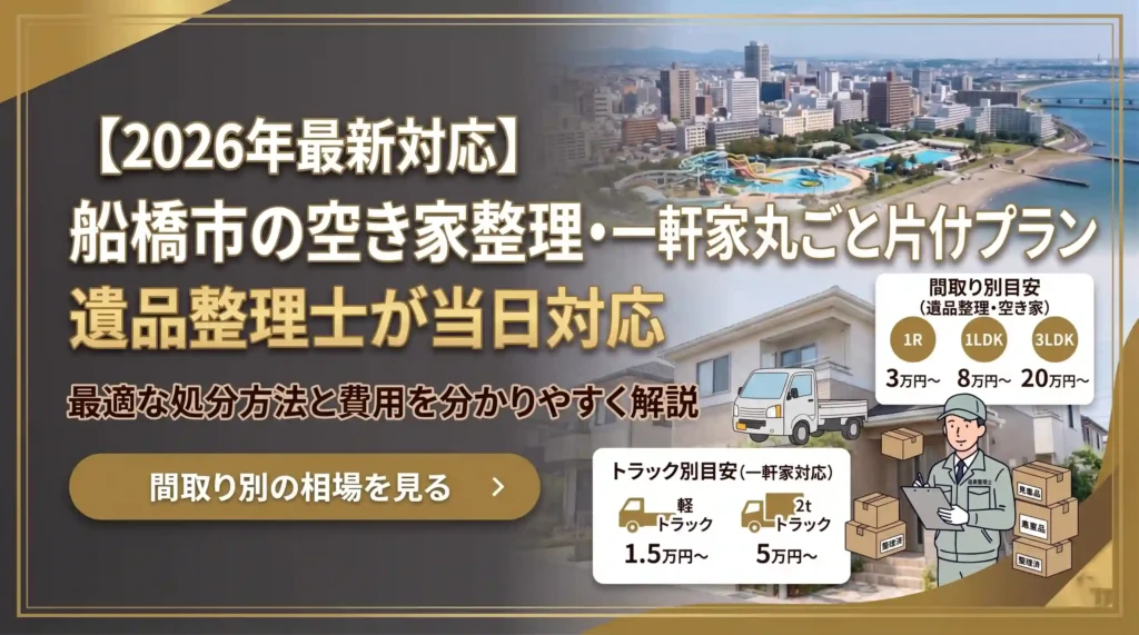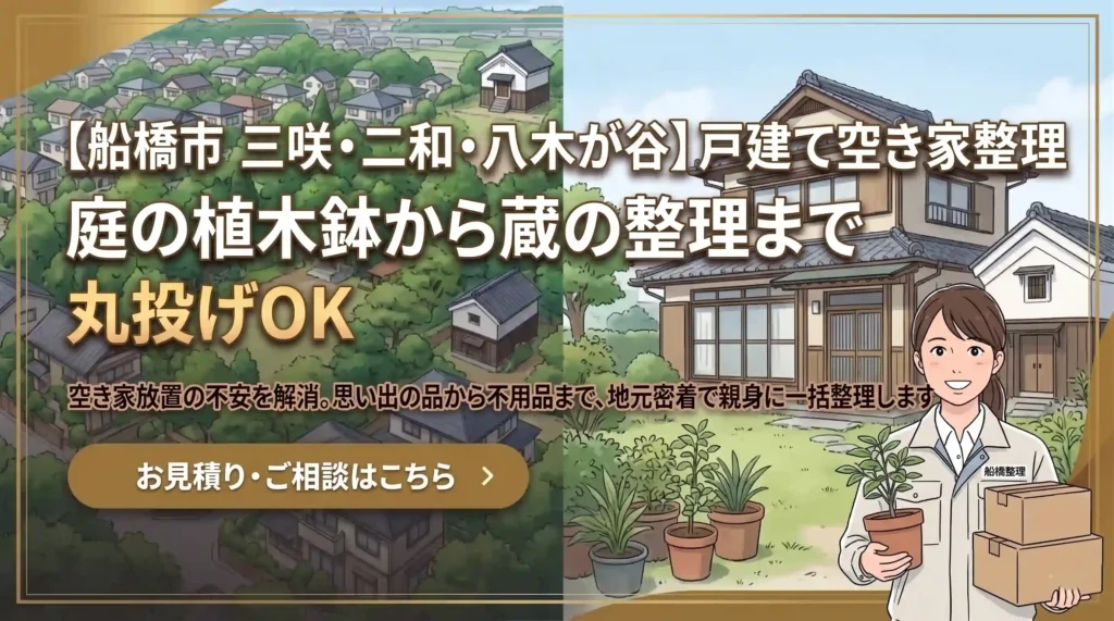 【即日下見】船橋市の空き家整理・一軒家丸ごと片付けプラン|遺品整理士が当日対応