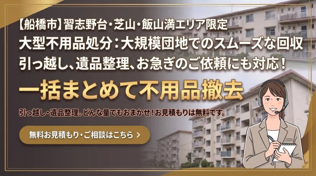 船橋市習志野台・芝山・飯山満エリアの不用品処分:大規模団地でのスムーズな回収