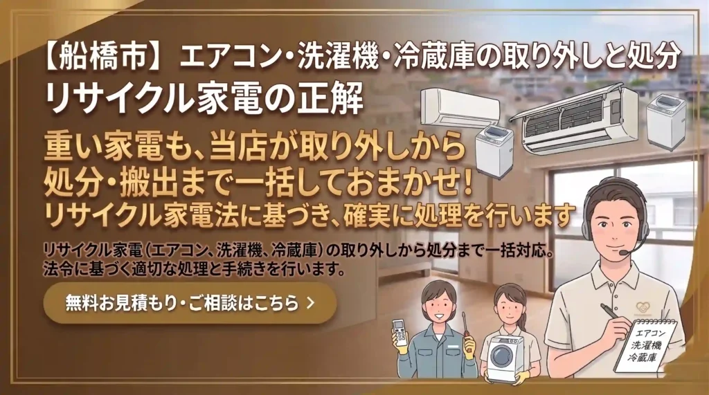 船橋市でのエアコン・洗濯機・冷蔵庫の取り外しと処分:リサイクル家電の正解