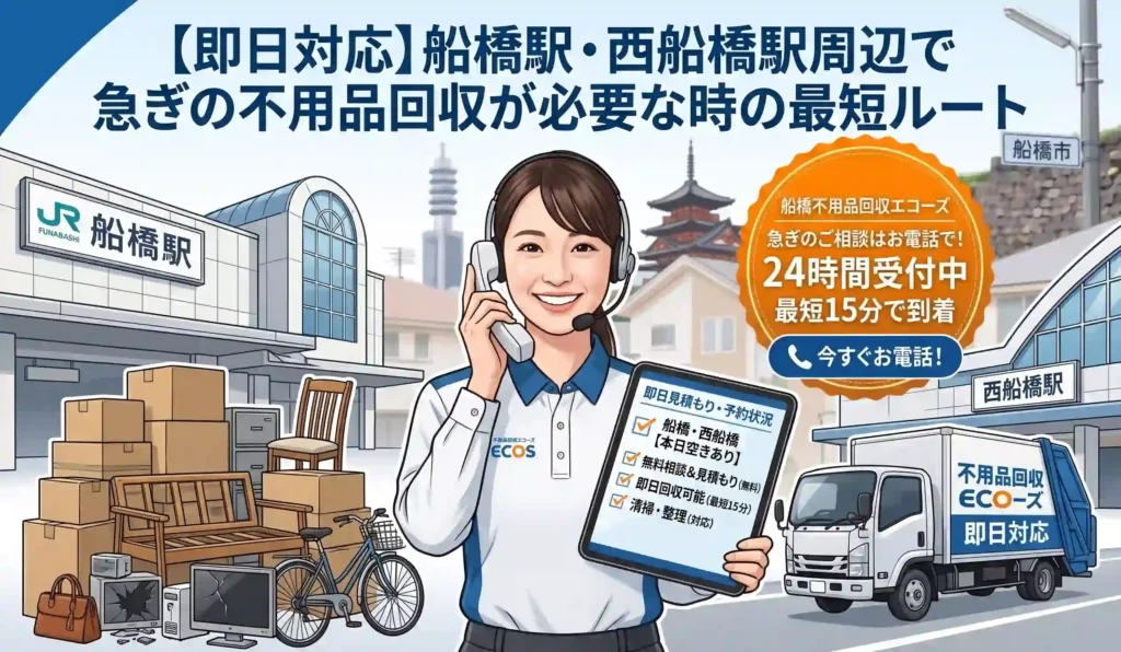 【即日対応】船橋駅・西船橋駅周辺で急ぎの不用品回収が必要な時の最短ルート