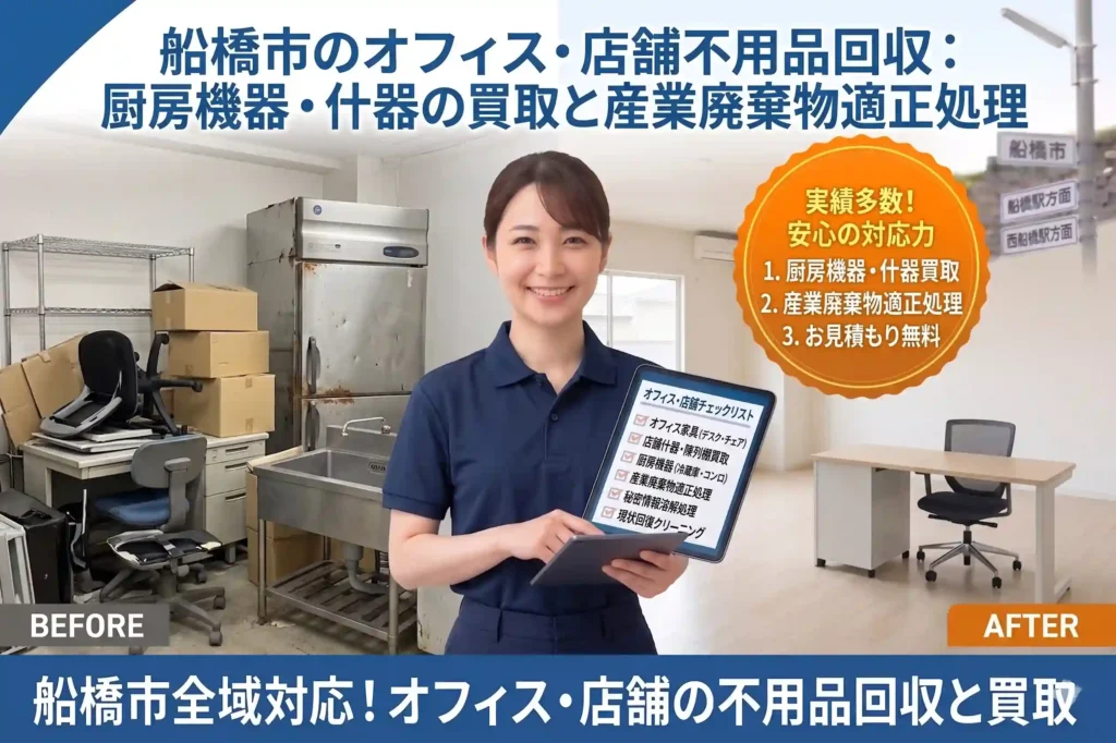船橋市のオフィス・店舗不用品回収:厨房機器・什器の買取と産業廃棄物適正処理