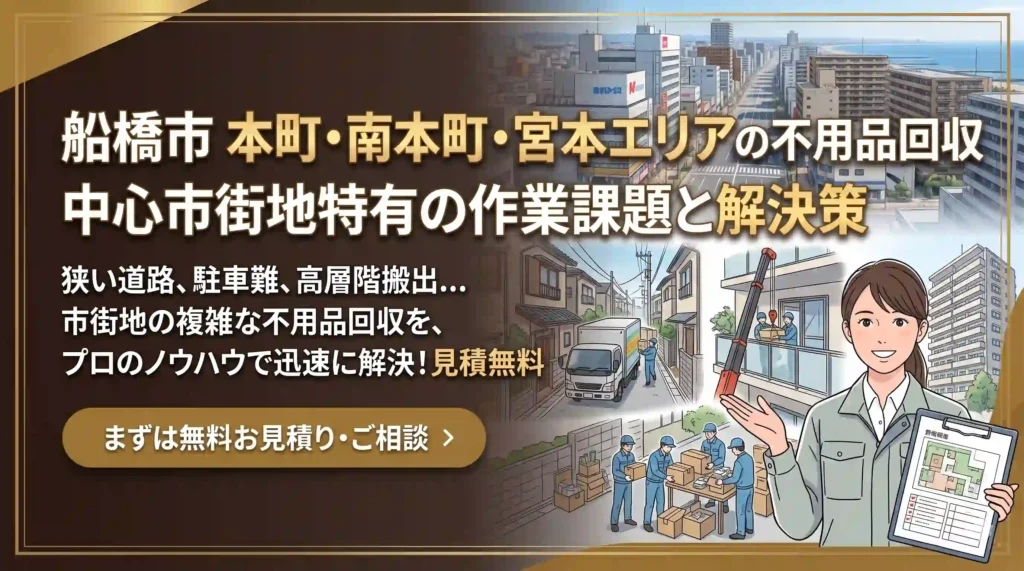 船橋市本町・南本町・宮本エリアの不用品回収:中心市街地特有の作業課題と解決策