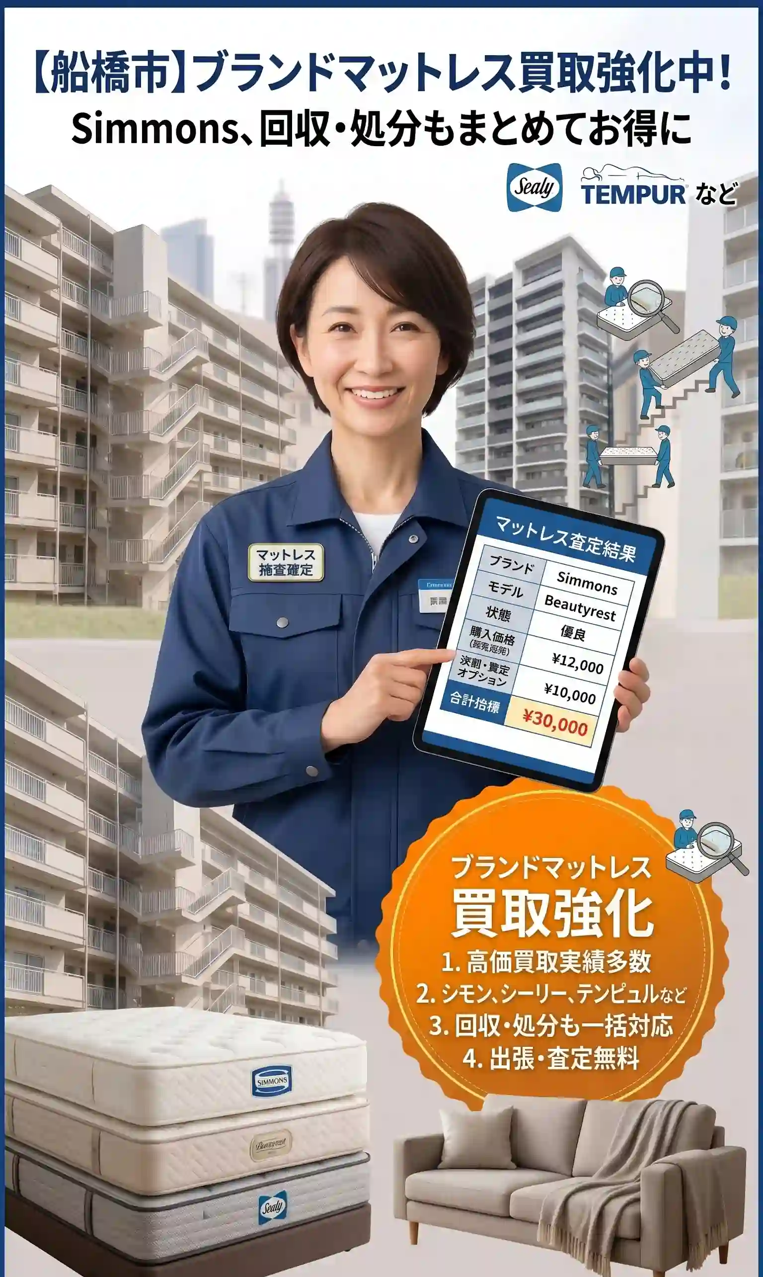 【船橋市】ブランドマットレス買取強化中!回収・処分もまとめてお得に