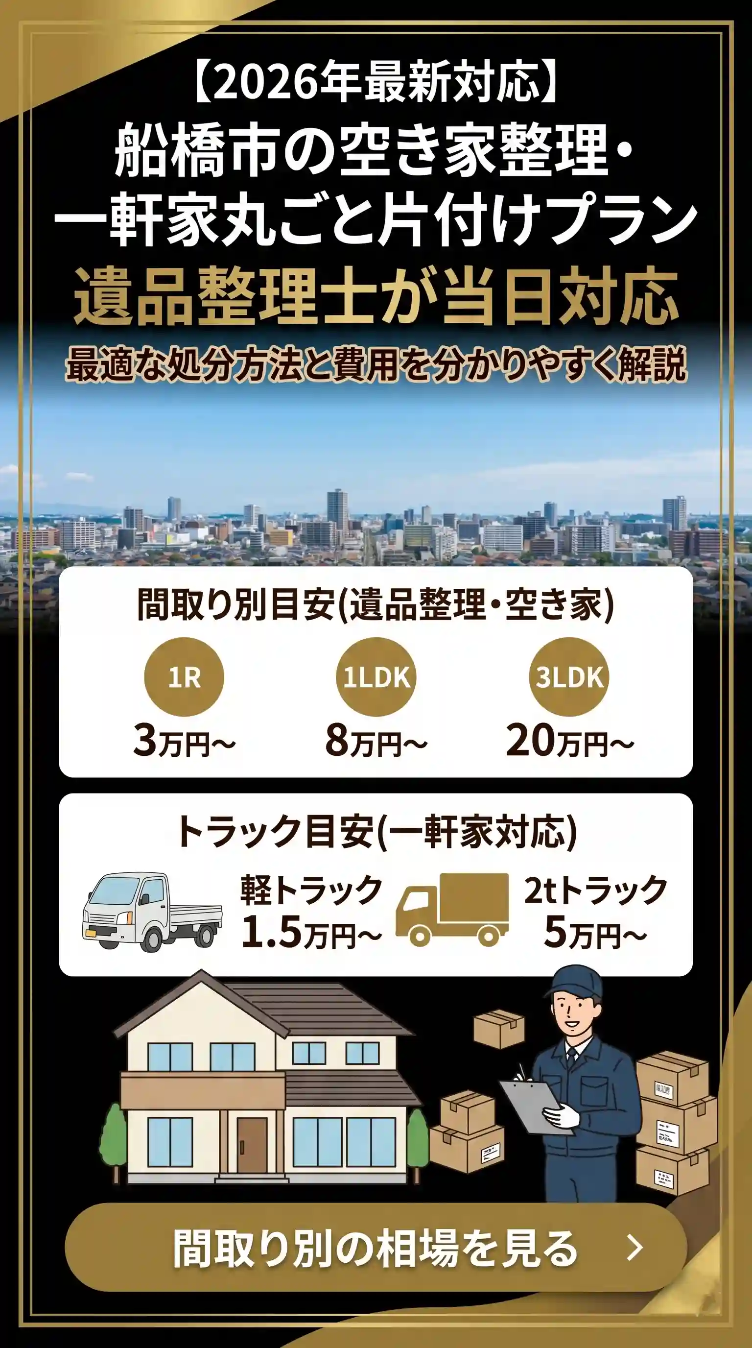 【即日下見】船橋市の空き家整理・一軒家丸ごと片付けプラン|遺品整理士が当日対応